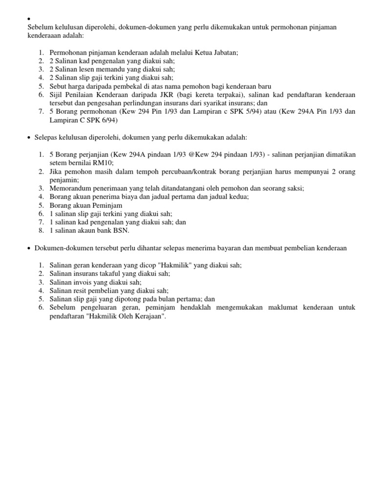 Prosedur Mohon Pinjaman Kenderaan Kerajaan Pdf